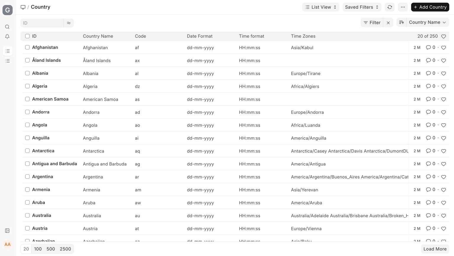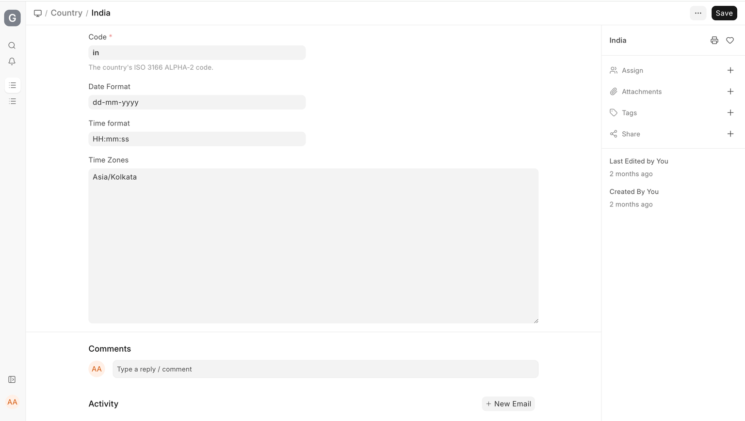A Country list can be maintained in the system and an appropriate country can be tagged to different entities and transactions as per the need.