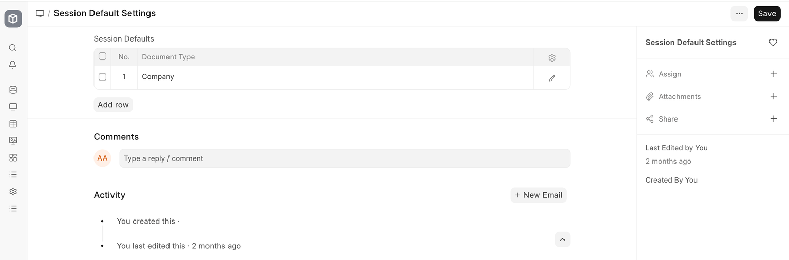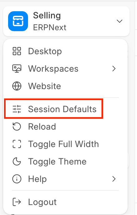 - Select the DocType for which you want to set Session Defaults.