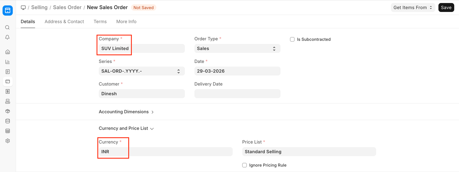 Let's assume that you have a multi company setup spanning across different countries then you have to set the 'Company' , 'Country' and 'Currency' fields every time while creating new transactions. This is a very time-consuming process when you have to deal with multiple Sales Orders daily. Hence, instead of putting the value manually, the value set in the Session Defaults gets displayed automatically by default.