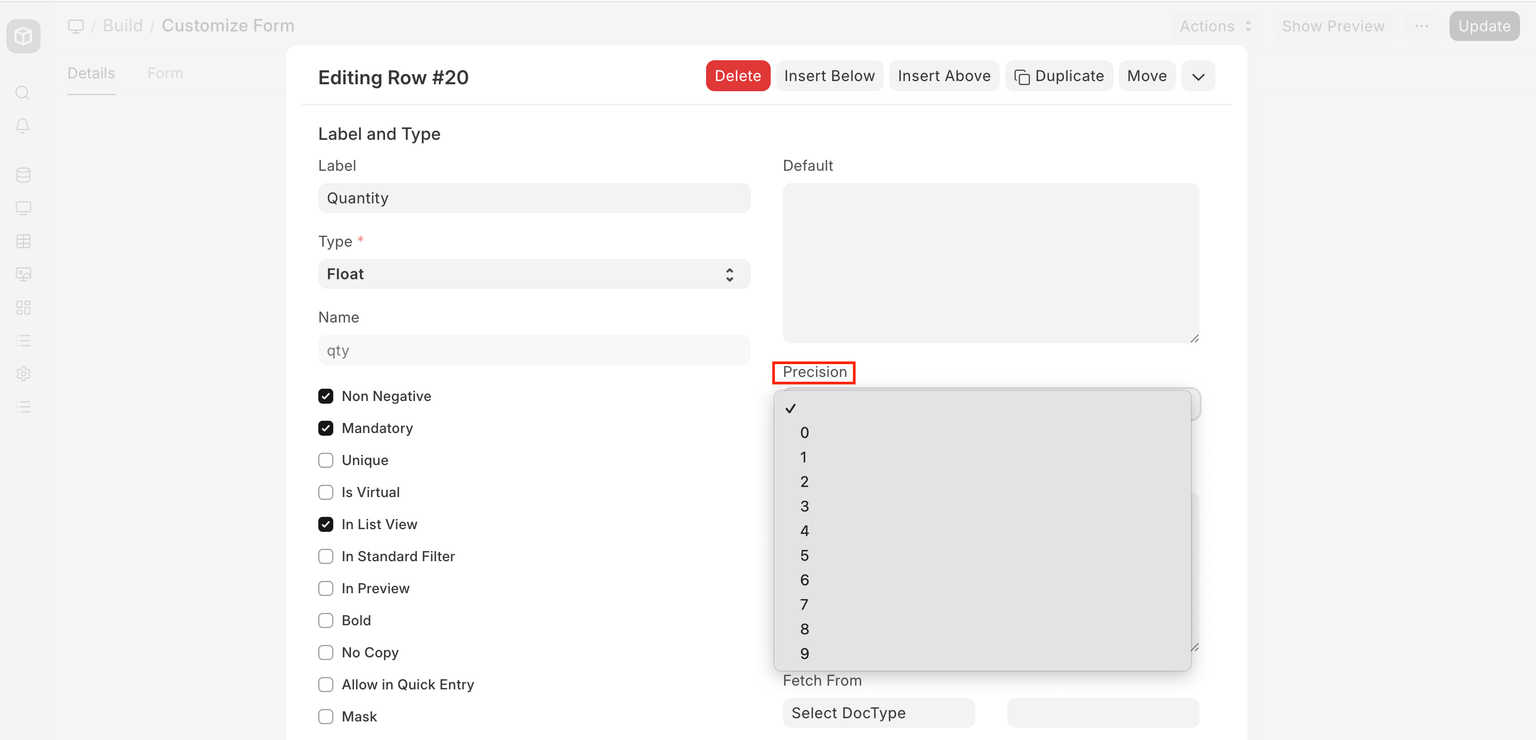 You can also change/customize the precision settings globally or for a specific field.