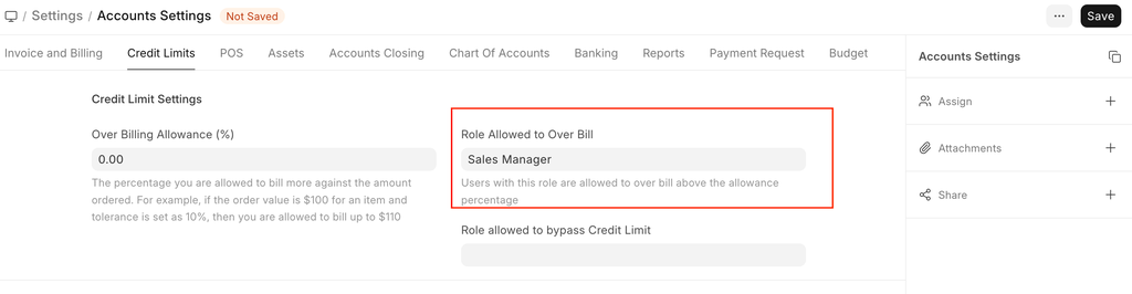 You can allow users with a specific role to override the Credit Limit validation and submit a Sales Order or Sales Invoice even when a Customer's Credit Limit is fully utilized.