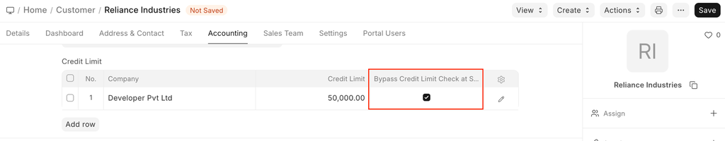 On setting Credit Limit at the Company level, all the Customers will have this Credit Limit applied globally.