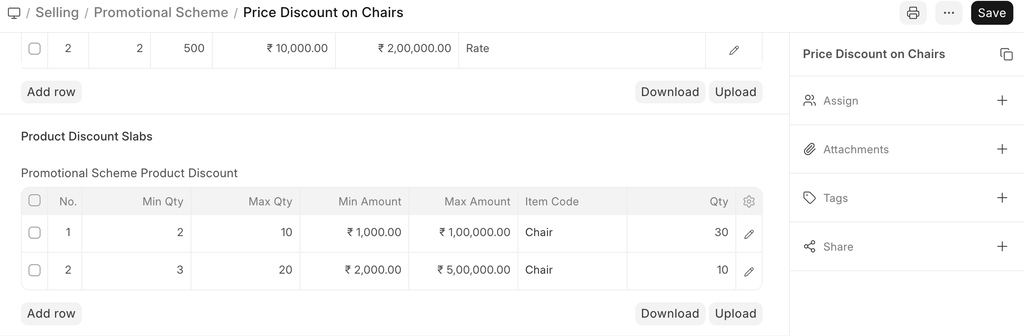 Promotional schemes help businesses become successful as lower prices for a limited period of time to attract more Customers. They can be easily configured in ERPNext. A Promotional scheme is linked to a pricing rule, against each slab system that will generate the pricing rule.