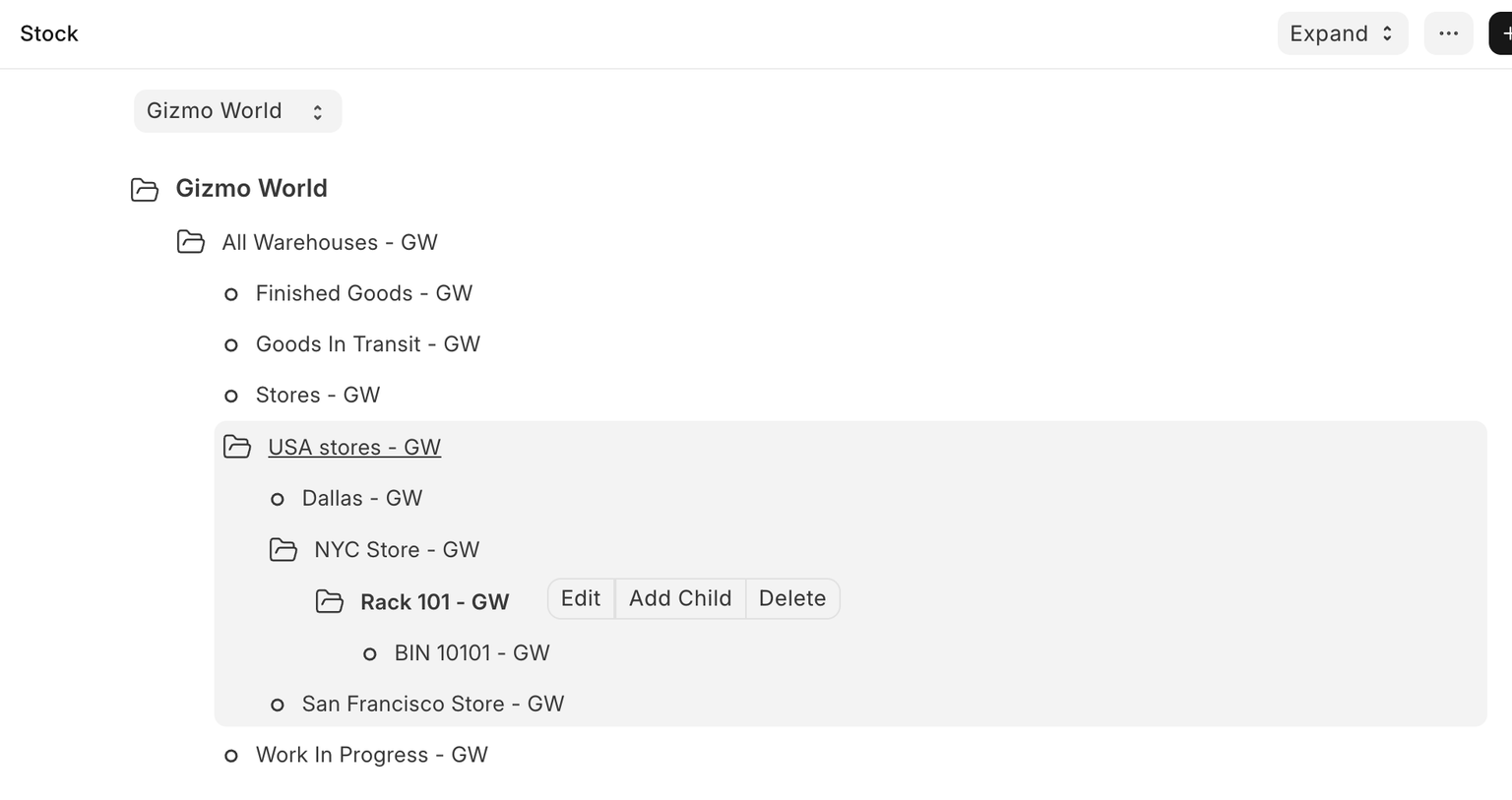 Home > Stock > Settings > Warehouse