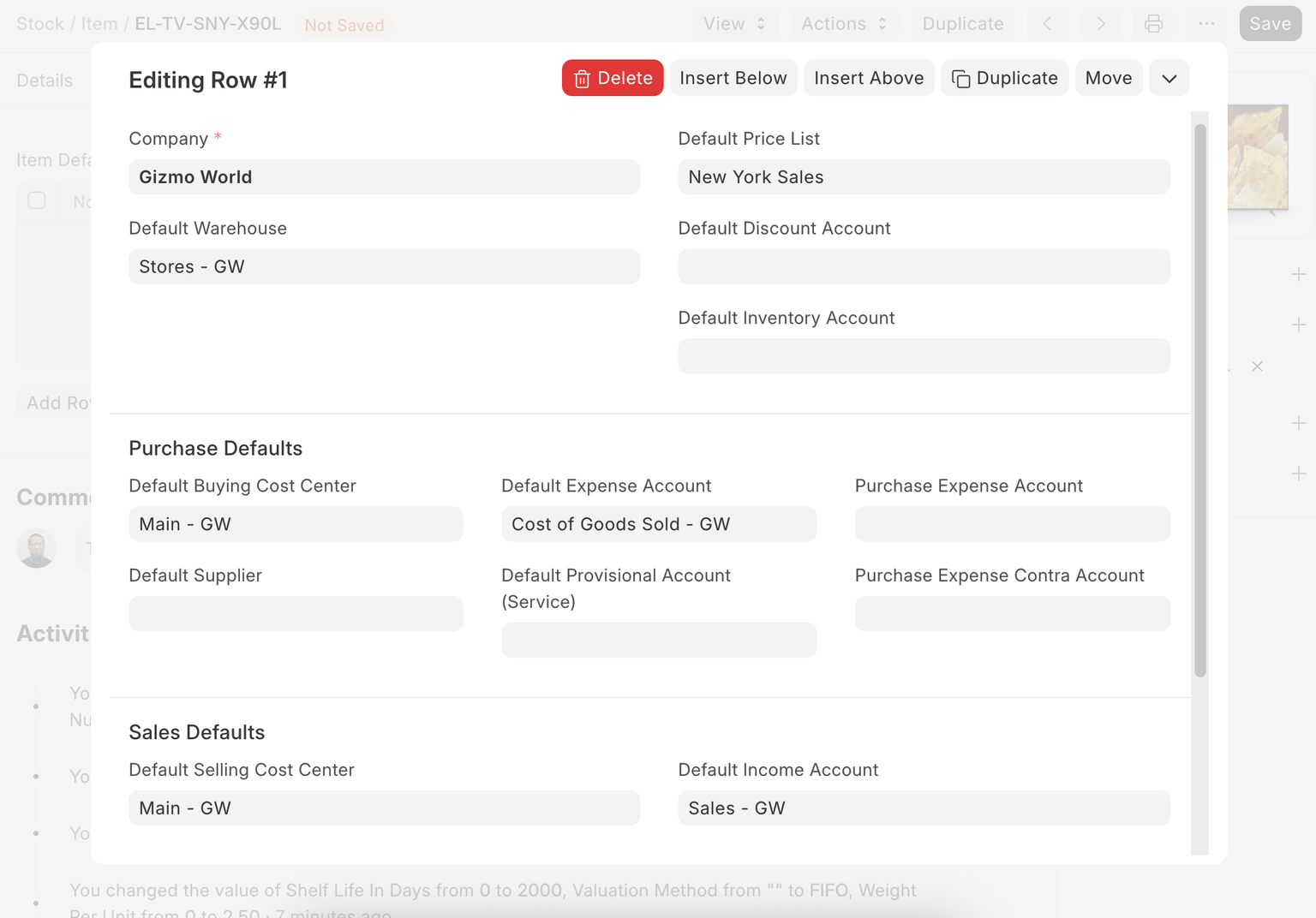 - Default Price List: Whether Standard Selling or Standard Buying. Likewise, you can also set the purchasing and selling default accounts