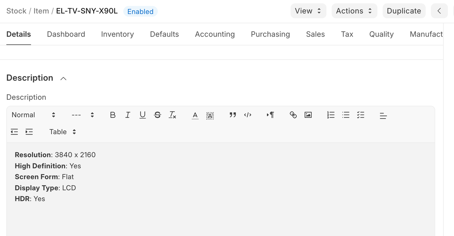- Is Fixed Asset : Tick this checkbox if this item is a company Asset. Check out the Asset Module to know more.