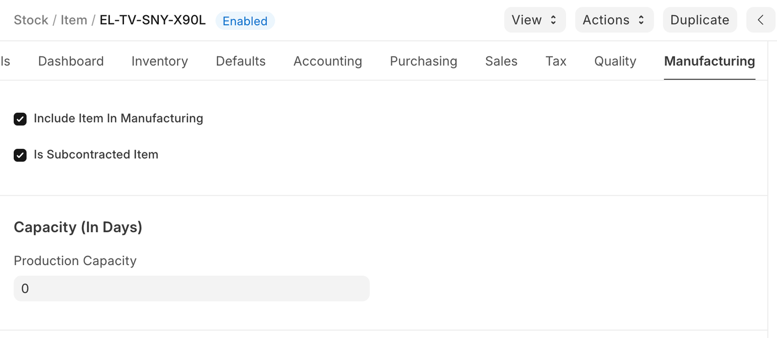 - Include Item in Manufacturing : This is for raw material Items that'll be used to create finished goods. If the Item is an additional service like 'washing' that'll be used in the BOM, keep this unchecked.