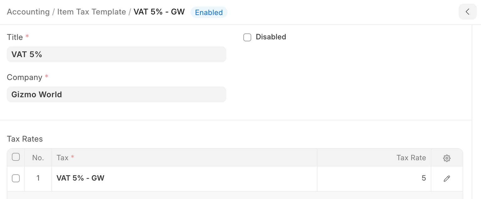 - Disabled : If you disable an Item, it cannot be selected in any transaction.