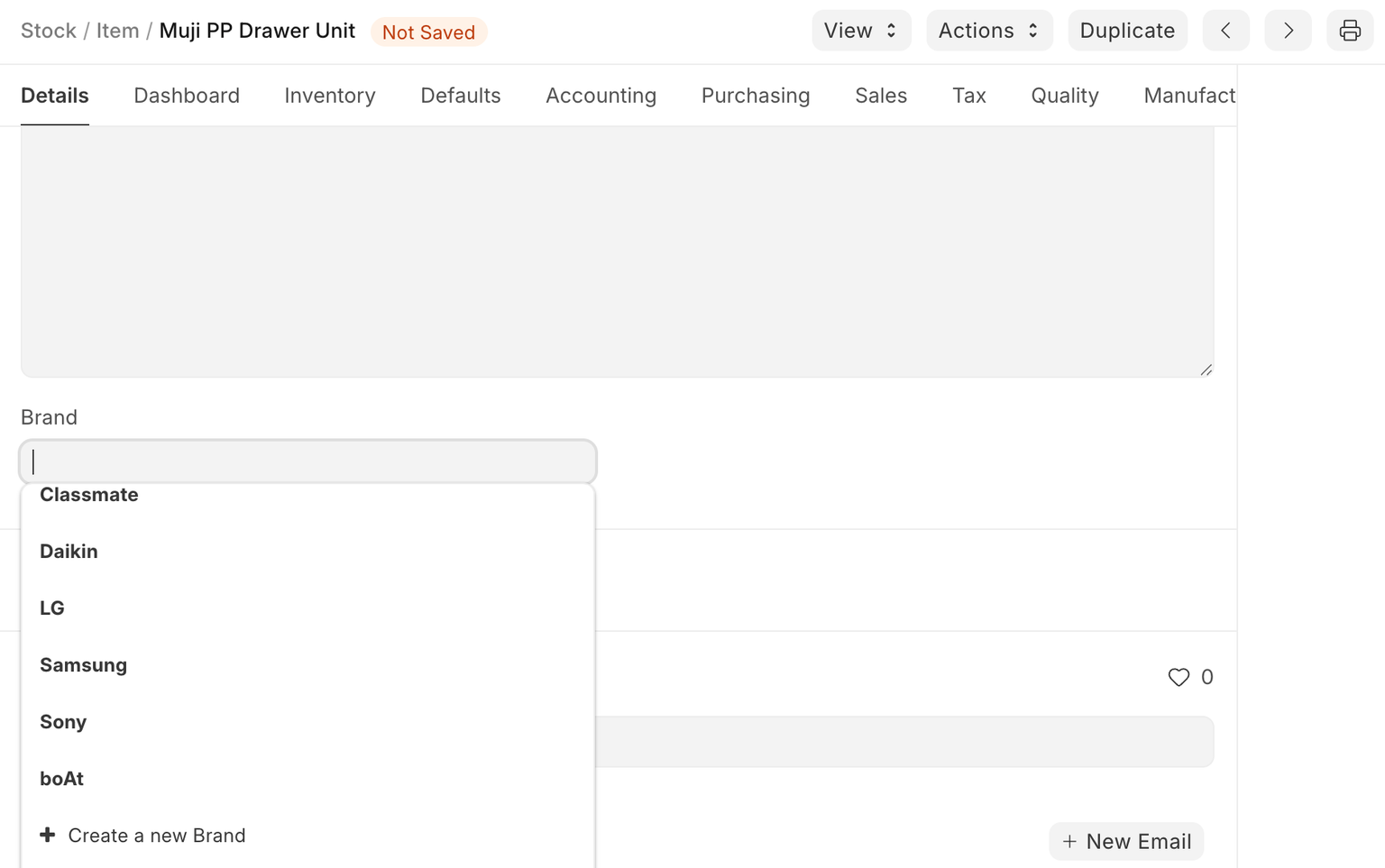 - Go to the Brand list and click on New.