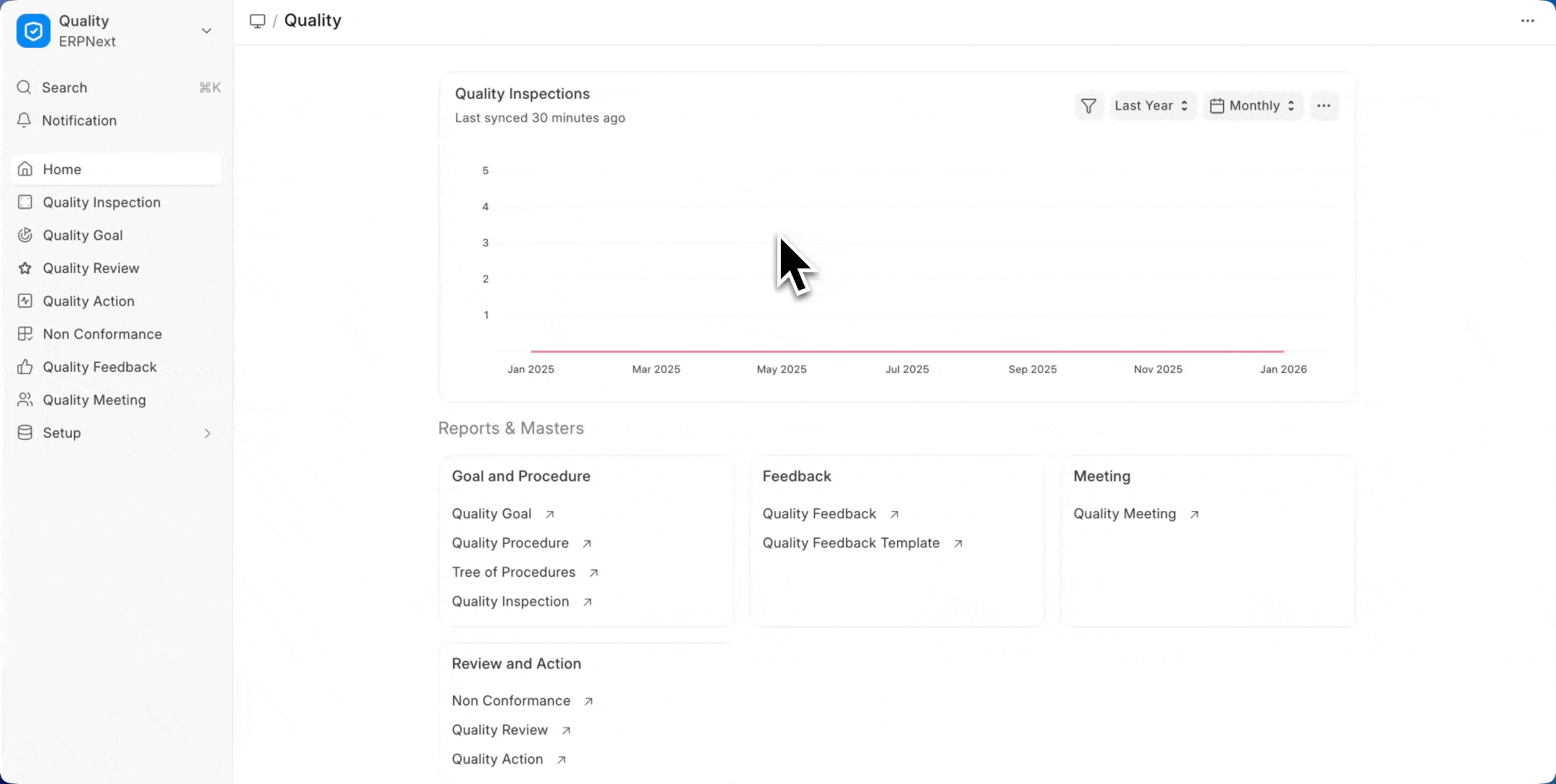 Quality Actions can be initialized for a Quality Goal or for a Customer Feedback which may not meet the expected quality standards. Depending on that a Corrective or Preventive Action can be started.