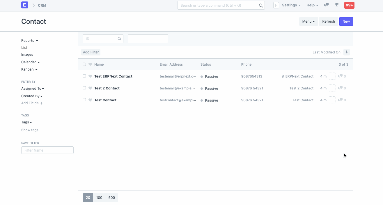 - In the Google Contacts list, click on New. Enter the Google Account Email you want to sync and then save it. Now click on Authorize Contacts Access to authorize ERPNext to get Contacts data from Google.