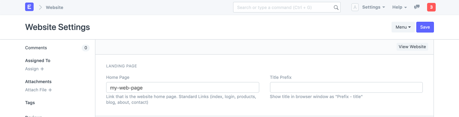 - Go to Website > Setup > Website Settings.